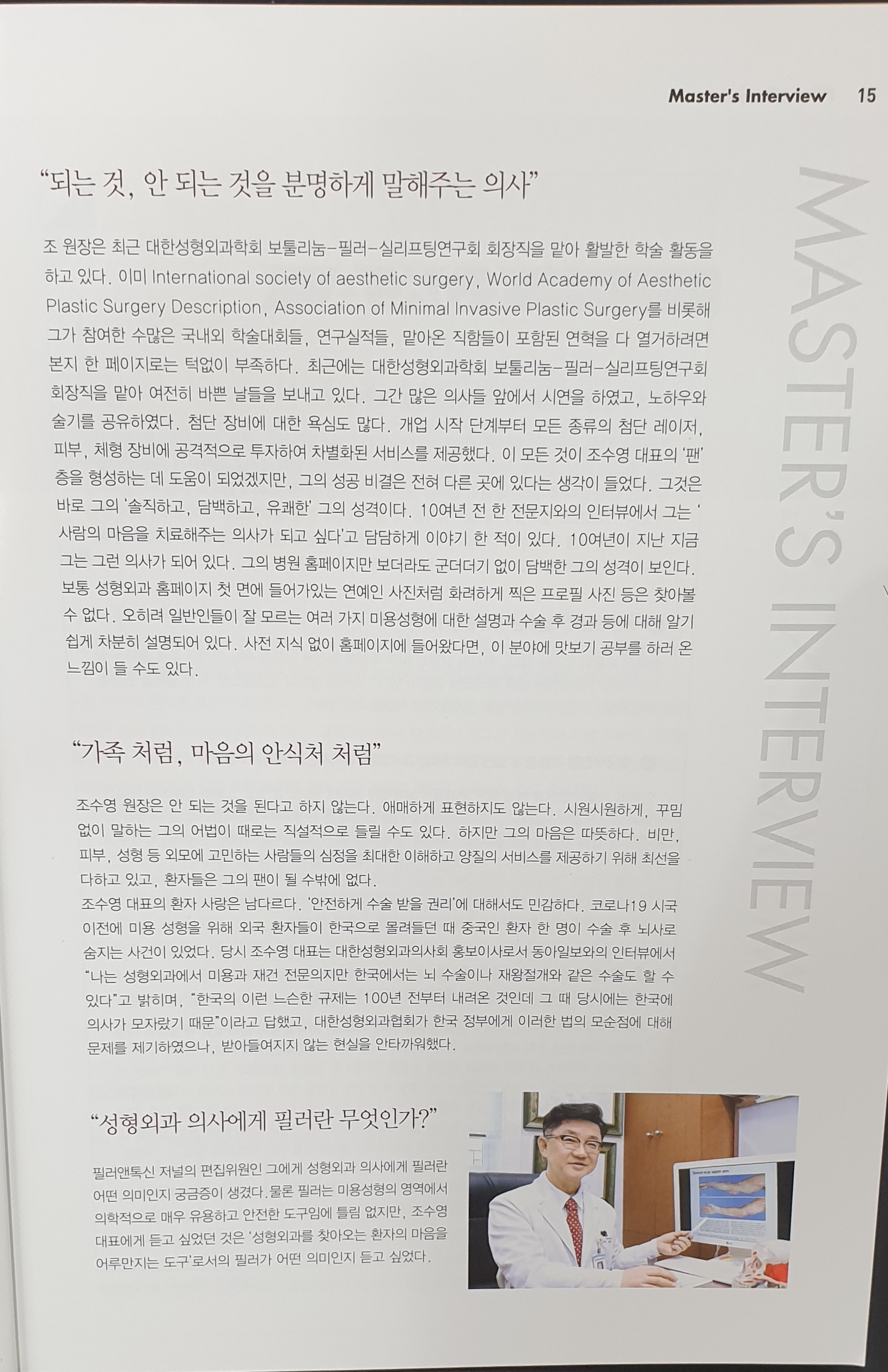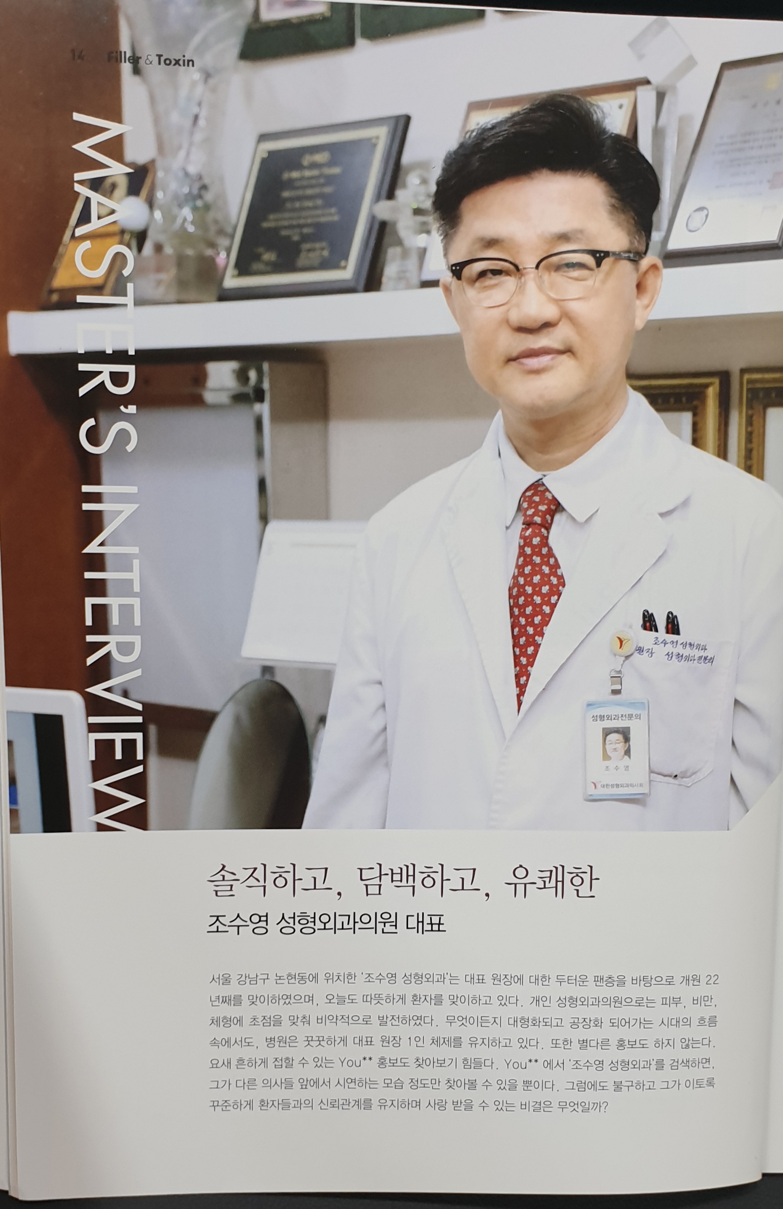 Filler&Toxin Àú³Î Vol.7 NO.1 2021/Åë±Ç17È£ Master's interview º»¿ø Á¶¼ö¿µ ¿øÀå²²¼ 2021³âµµ Åë±Ç 17È£ÀÎ Filler&ToxinÀ̶ó´Â Àú³Î¿¡ Master's interview¿¡ ¼Ò°³µÇ¾î¼ ¼Ò½ÄÀ» ¿Ã·Á µå¸³´Ï´Ù.